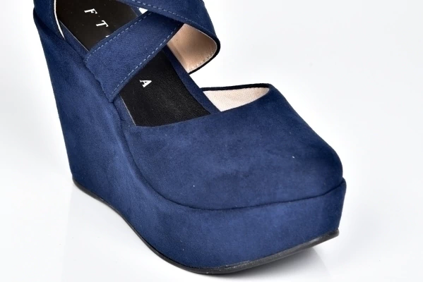 Anabela em camurça com cabedal fechado nos dedos e 2 tiras cruzadas em cima do pé o que proporciona muita estabilidade ao caminhar. Fechamento por fivela na lateral do pé. Salto 10 cm com plataforma de 3,5 cm o que deixa a curvatura do pé com apenas 6,5 cm proporcionando mais conforto. Modelo versátil que pode ser usado tanto em dias mais frios quanto mais quentes.